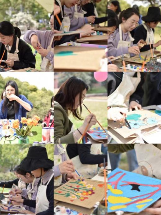 3月15日中午,学院分工会组织全体女教职工在仰仪北楼后侧草坪进行快手野餐厨艺大比拼暨主题手袋手绘活动。活动现场,老师们自备食材,利用学院教工小家活动设施亲自烹饪了美味可口的快手食物进行分享。院长王月兵、党委书记汪俊斐、副书记田达志、副院长罗哉来到活动现场,为女教工们送上来亲切的慰问和祝福。活动同时进行了主题手袋绘制活动,活动邀请到专业绘画老师为大家讲解绘画技巧、颜色搭配、以及绘画颜料的基本知识。随后,女教工们变身绘画达人,尽情释放自己的想象力与艺术细胞,打造各具特色的“纯手工手袋”。 一个个精彩的限量版手工帆布包表达出了女教工们对生活、对工作的热爱以及对未来的期待。