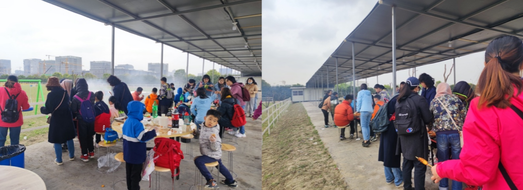 当天大家轻装出行,活动场地提供了炊具及食材。女教工和孩子们在一片欢声笑语中开始烧烤准备节日大餐。大一些的几个孩子各个摩拳擦掌,纷纷动手协作,都想为过节的妈妈们露一手。