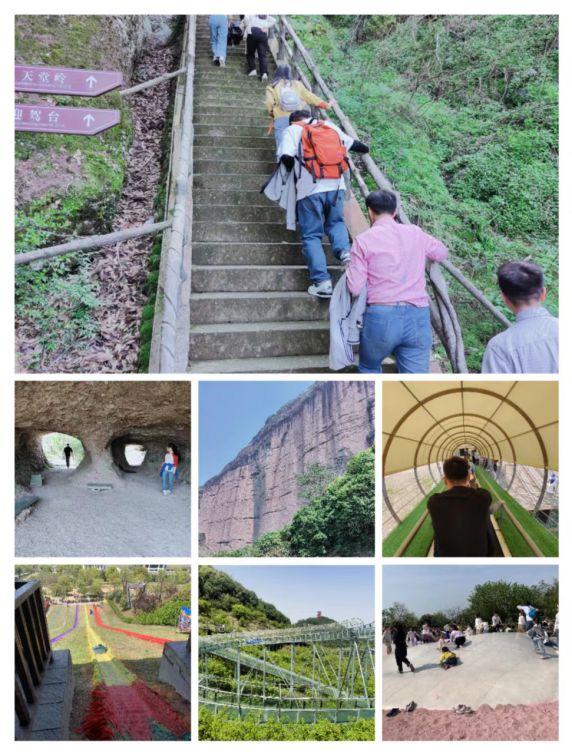 在武义大红岩,竹海、赤壁、峡谷、山峰、溪湖等自然景观格外美丽,精美绝伦,宛若仙境。老师们徜徉在深山幽谷中,时而驻足观景,时而谈笑风生,时而坐石歇息、互叙家常,尽情感受着明媚的春日气息,感受着幸福美好生活。
