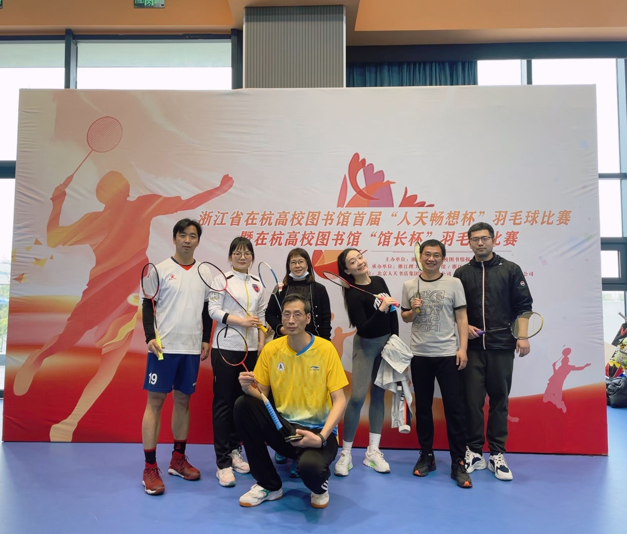 4月7日,由浙江省高等学校图书情报工作委员会主办的浙江省在杭高校图书馆首届“人天畅想杯”羽毛球比赛暨在杭高校图书馆“馆长杯”羽毛球比赛在浙江理工大学临平校区体育馆举行。来自杭州地区高校图书馆的19支队伍,以及人天羽毛球俱乐部共同参赛。我校图书馆(档案馆、博物馆)分工会共派出7名运动员参加。