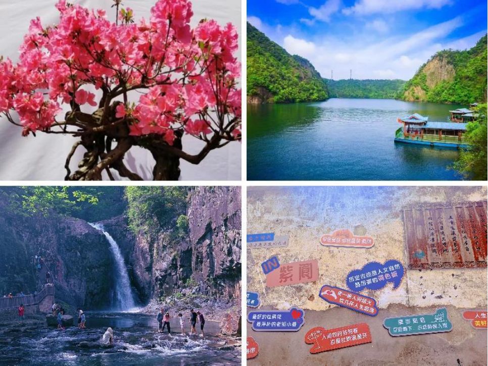 上午10:00左右,50余位教职工及家属来到了美丽的诸暨紫阆古村,恰逢当地举行第三届紫阆杜鹃花节。大家先后观赏了大岭山漫山遍野的杜鹃花和村社区服务中心展出的盆栽杜鹃,之后参观了紫阆古村。午餐后前往国家4A级旅游区五泄风景区,游览一水五折的壮观瀑布。