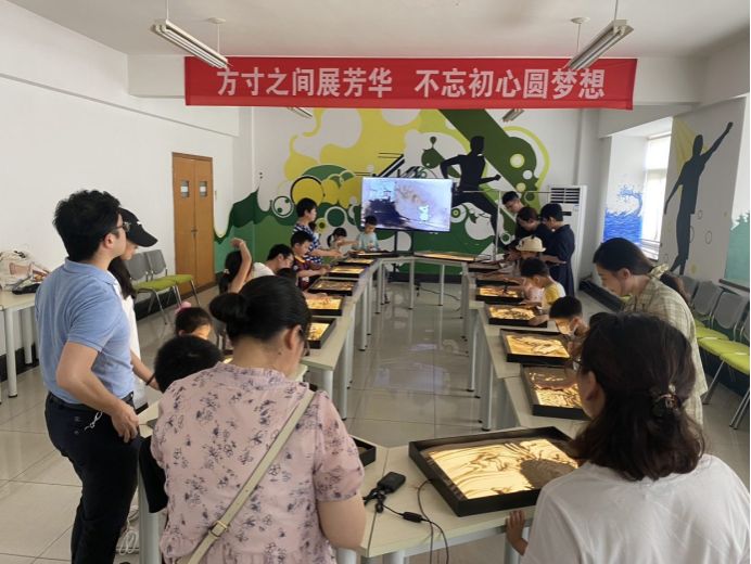 活动开始之前,沙画老师首先介绍了沙画的绘制流程与制作技巧,并通过视频观赏与亲身展示带领大家深入了解沙画艺术。在场的家长与孩子都兴趣盎然,跃跃欲试。