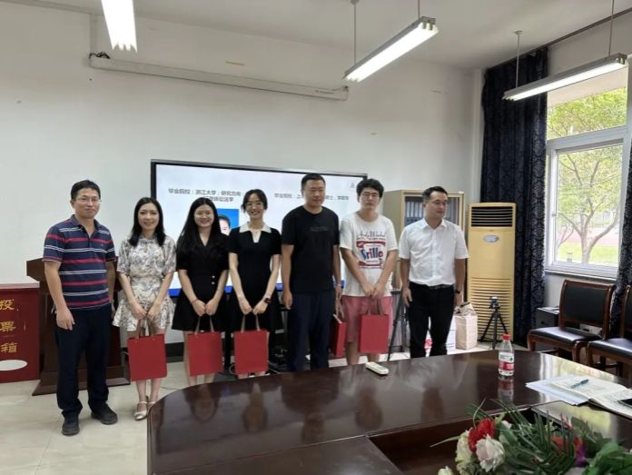 在“法学院欢迎您”的新教师欢迎仪式上,朱一飞和张徐兴共同向新教师赠送了校徽。朱一飞代表学院对新教师的加入表示欢迎,并简要介绍了新进博士教师的履历,希望各位新教师能尽快适应新环境,顺利开展教学科研工作。
