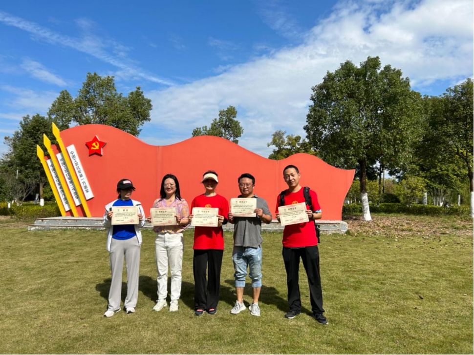 2500米“重走长征路,接受红色洗礼”体验项目活动按完成项目比赛用时长短共设置一等奖1名、二等奖2名、三等奖5名(图4-6)。11月04日上午9:30,45位教职工及其家属们顺利到达海宁潮起东方雕塑公园“长征”起点处,活动过程中教工们发扬远征拼搏精神,追寻红军历史足迹,所有参与人员均顺利完成了本次2500米长征体验活动(图3)。参与活动的老师纷纷感觉本次体验活动不仅锻炼了身体、强化了意志,同时也感叹当年红军长征的不易,相关党史学习教育体会也更为深刻。