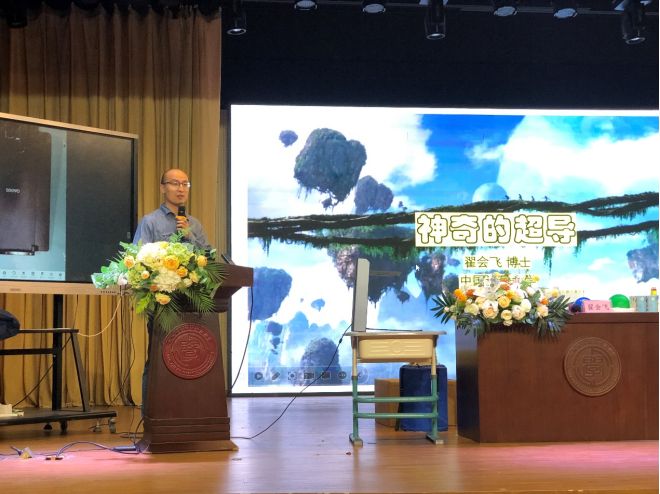 三个实验过后引入由于温度导致的物态变化,并以水的气、固、液三态变化为例更直观的介绍了其中的科学原理。然后带着电阻在不同温度下会发生什么转变这一问题开启了介绍百年以来超导的发展历程,与同学们分享了从超导的发现到理论与实验方面的各项重要里程碑,从低温超导到高温超导,从电力传输、医疗、交通到军事、高能物理等方面超导的应用。
