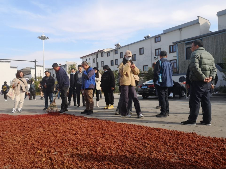 虽然已经是初冬时节,但穿岩十九峰景区五彩缤纷、层林尽染,显得分外美丽。繁重工作之余的老师们爬高山、穿栈道、 过吊桥异常兴奋愉快。穿岩十九峰景区是以观光、游览、度假、科考为主的山水型省级风景名胜区,国家级风景名胜区。景区以雅、幽、奇、险为特色,融峰、谷、洞、溪、瀑为一体,山脉绵亘,峰峰相连;台地高峻,恢宏开阔,深谷险壑,清溪碧潭,是地质学上典型的丹霞地貌和国内罕见的最大的丹霞群之一,也是硅化木国家地质公园。景区兼具“桂林之秀、漓江之美、雁荡之奇”,素有“小桂林”、“浙东张家界”之美誉。 梅渚古村始建于宋,因古时多梅,旁有聚落而得名。村内保留了宅前塘、更楼、庵堂、祠庙、民居、店铺等大量明、清、民国时期有价值的古建筑,古建筑梁架用材硕大,楼阁轩敞飞檐雕梁,窗格花纹,雕饰华丽,特具风格,堪称是一座民间建筑雕刻艺术博物馆。老屋、台门众多,行走其间,感受时光的痕迹,别有韵味。老师们漫步在冬日暖阳下的花海中,其乐融融。