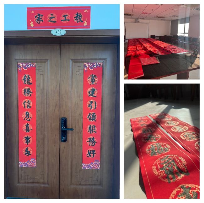 信息分工会已连续多年开展新春送春联活动,致力于把有温度、有分量的“文化年货”,把关怀温暖、美好祝福送给每位辛勤整年的教工。充分发挥工会职工文化阵地作用,引领广大职工快乐工作、幸福生活,助推工会精神文明建设再上新台阶。