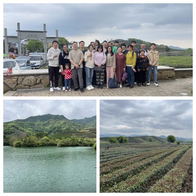 上午刚抵达龙坞茶村,学院教职工及其家属就被眼前的美景所吸引,连绵起伏的茶山,郁郁葱葱的茶树,仿佛置身于一幅美丽的画卷之中,先后游览了茶园风光和光明寺水库。午餐后,大家在茶村自由活动,有的在茶庄品茗,享受着宁静的时光;有的登上茶山,欣赏漫山遍野的青翠茶田。