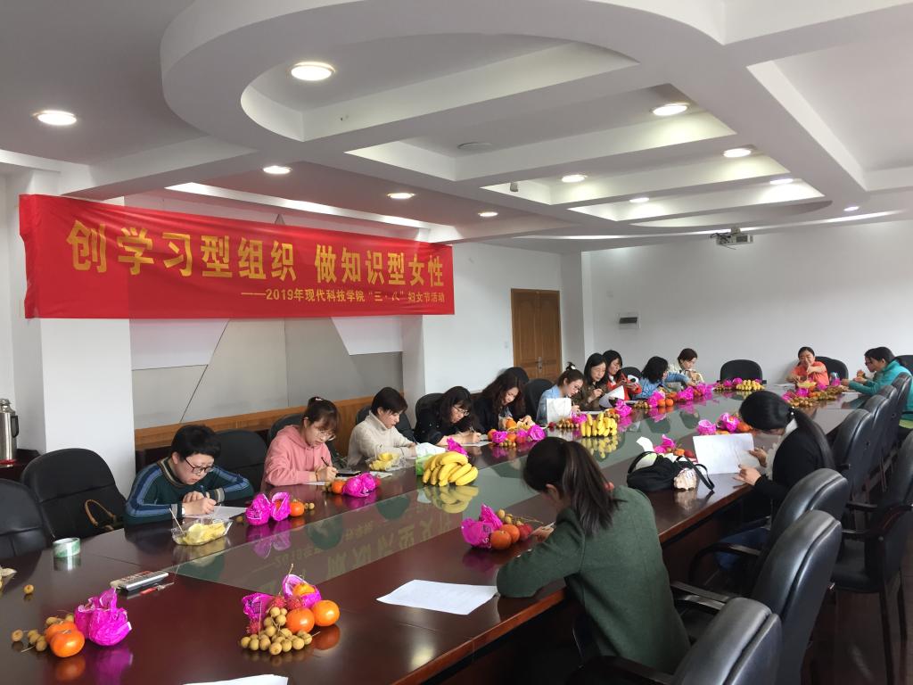 桃红柳绿,莺歌燕舞的阳春三月,我校的女教工们在忙碌辛劳中迎来了第109个 “三八”国际妇女节。为进一步提高女教职员工爱岗敬业,锐意进取的工作热情,增强女教职工法律法规常识,充分发挥“半边天”的作用,2019年3月20日现代科技学院分工会组织开展了“创学习型组织,做知识型女性” 为主题的知识竞赛活动,此次活动得到了分院领导的大力支持。