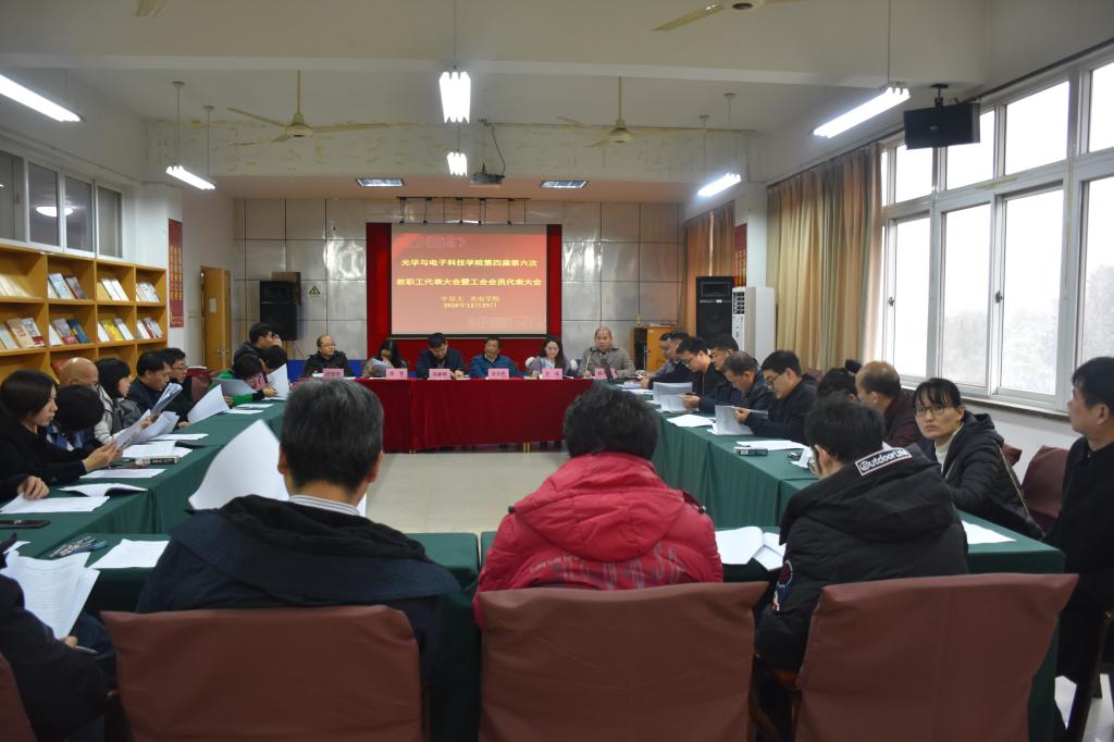 光学与电子科技学院第四届第六次教职工代表大会暨工会会员代表大会于2020年12月29日下午在赛博南楼412会议室召开。会议由光电学院分工会主席陈华才主持。