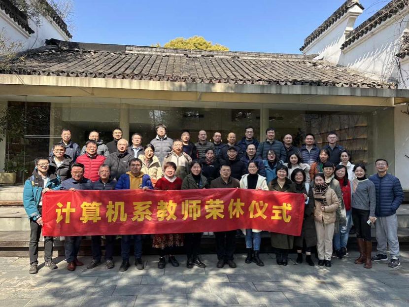2023年2月15日中午,信息分工会计算机系工会小组组织四十余位教师,在高教西公园为周杭霞、陆慧娟、谭劲、卫伟四位退休教师举办荣休仪式。