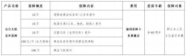 1.免费发放出行无忧意外保障卡,以分工会为单位领取;