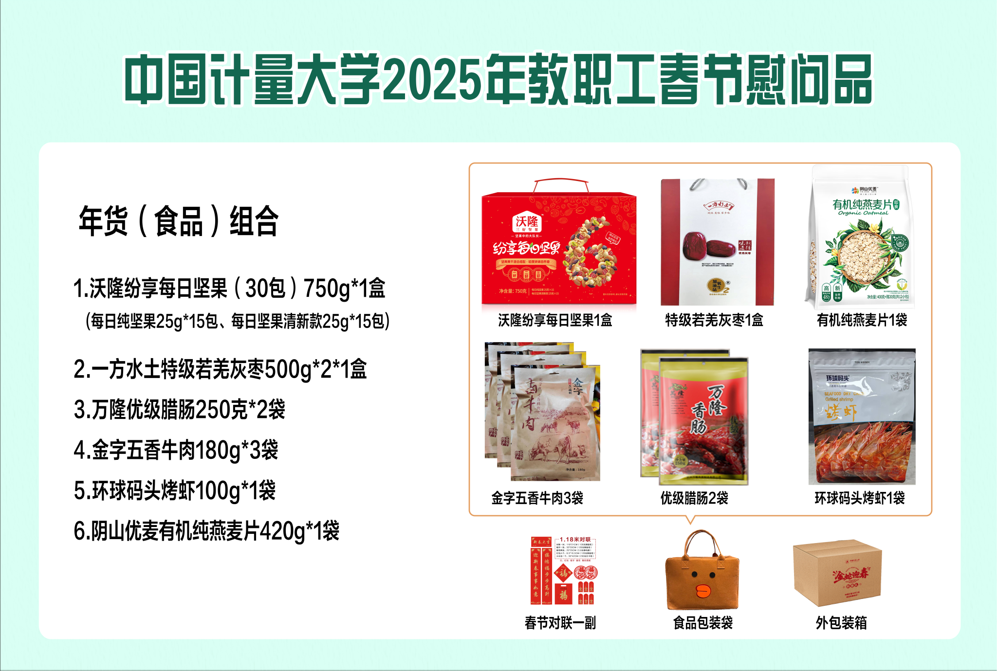 值此乙巳蛇年春节来临之际,校工会向全体教职工致以节日的问候。根据上级工会和学校有关规定,校工会通过学校招投标采购了春节慰问品并将于2025年初发放,请各分工会做好教职工慰问品种类选择和邮寄地址登记工作。具体安排如下: