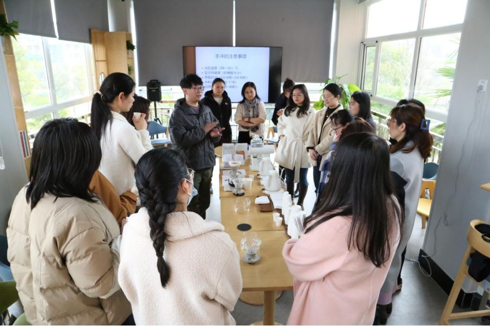 活动伊始,郑老师深入浅出地介绍了咖啡的起源、种类以及制作流程。随后,咖啡师现场演示冲泡方法,从研磨到冲泡,每一个环节都蕴含着丰富的知识和技艺。接着在咖啡师的指导下,教师代表冲泡了不同品种的咖啡豆,在自身体验的同时也感受了多种咖啡的香醇与魅力。大家纷纷表示,通过亲身品尝和对比,不仅加深了对咖啡的了解,还提升了自身的品鉴能力。在最后的互动问答环节,咖啡师就女教职工提出的问题,进行了深入的交流和探讨。