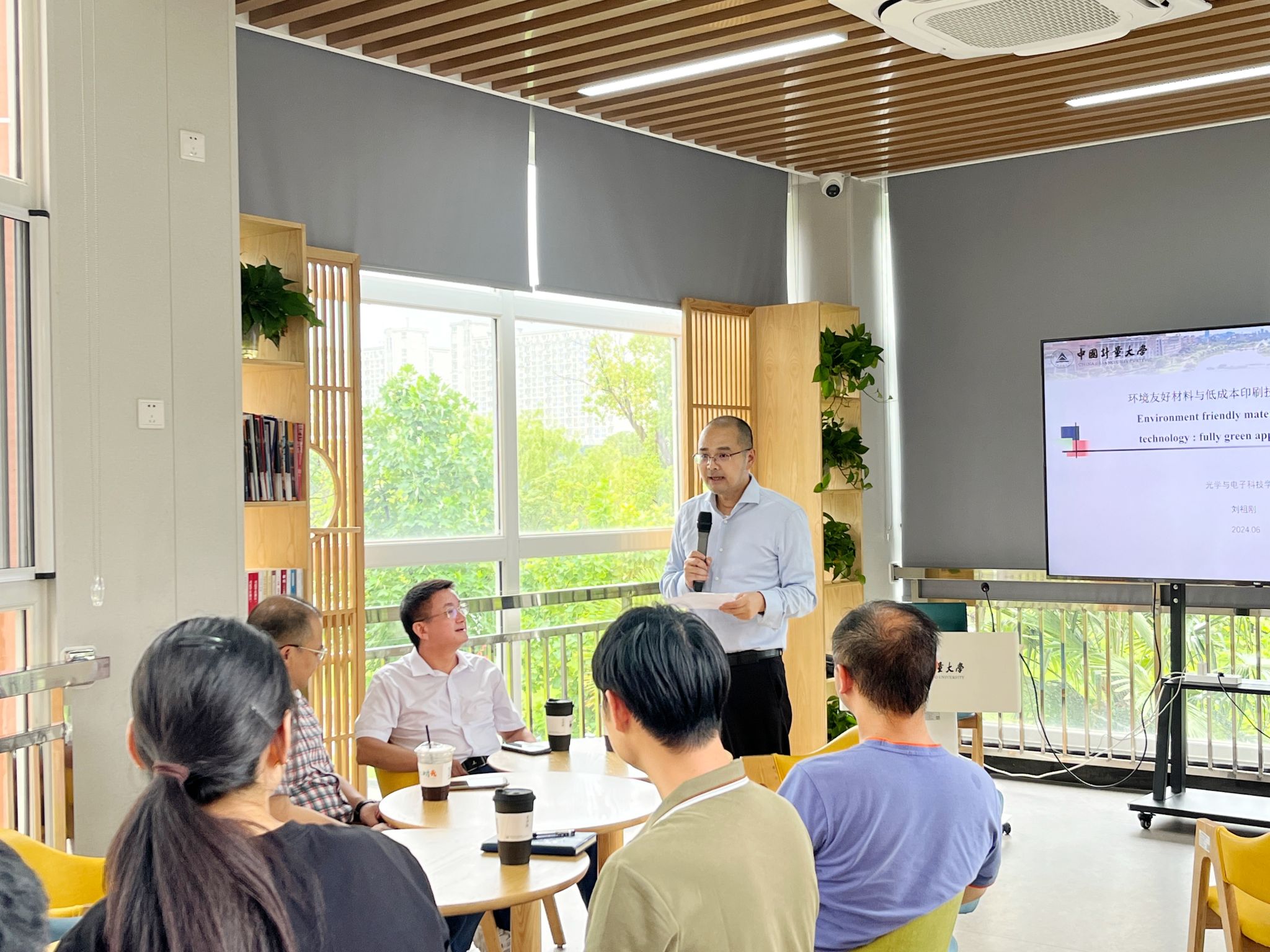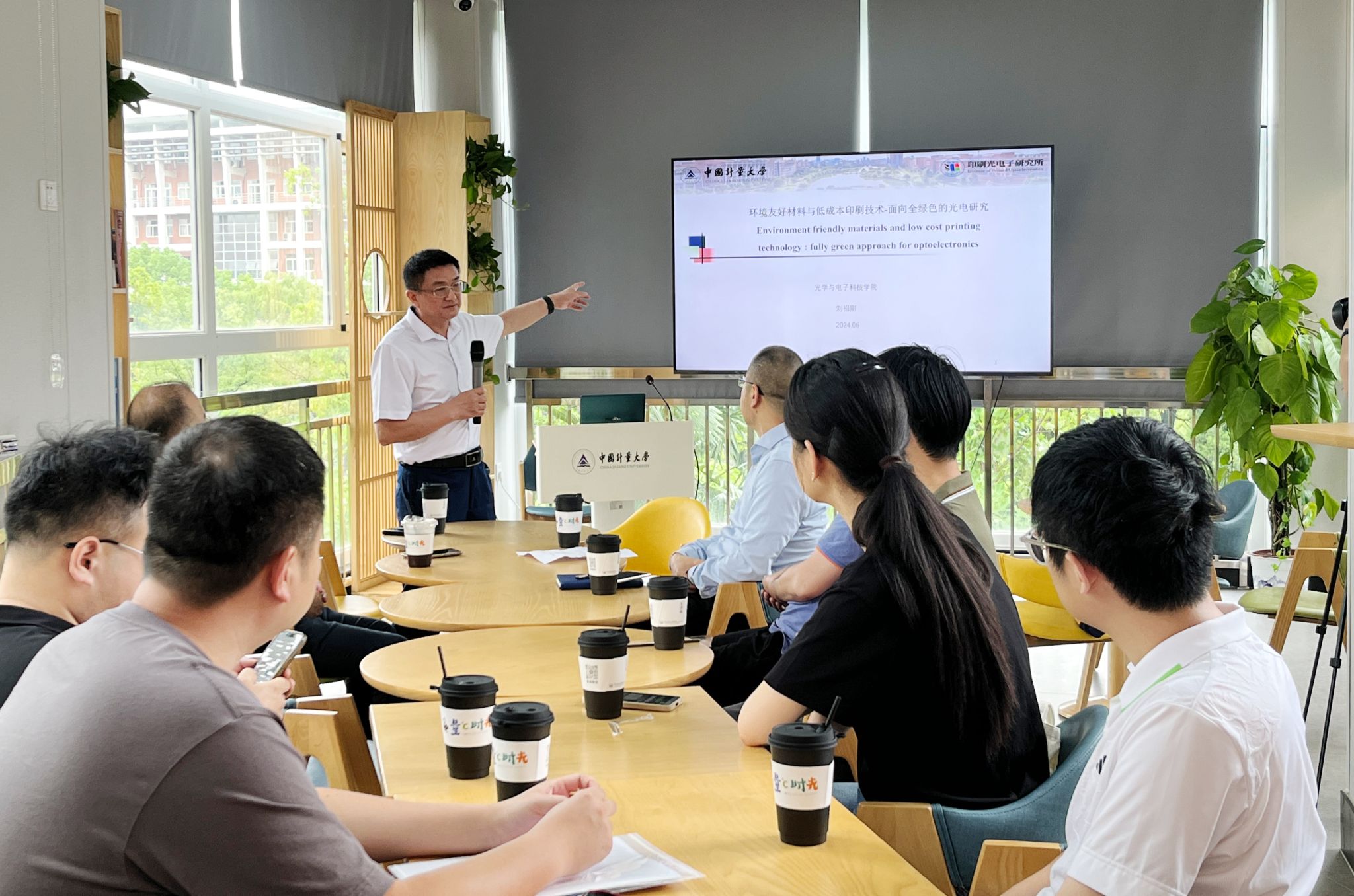 2024年6月24日下午,校工会、科学技术研究院联合光电学院在教授文化长廊活动室成功举办第六期教授学术分享会。本期分享会特邀光电学院刘祖刚教授,以“环境友好材料与低成本印刷技术-全绿色的光电技术研究”为主题进行分享,来自不同学院的教师们齐聚一堂,参与本次分享会,本期分享会由科学技术研究院常务副院长王强主持。