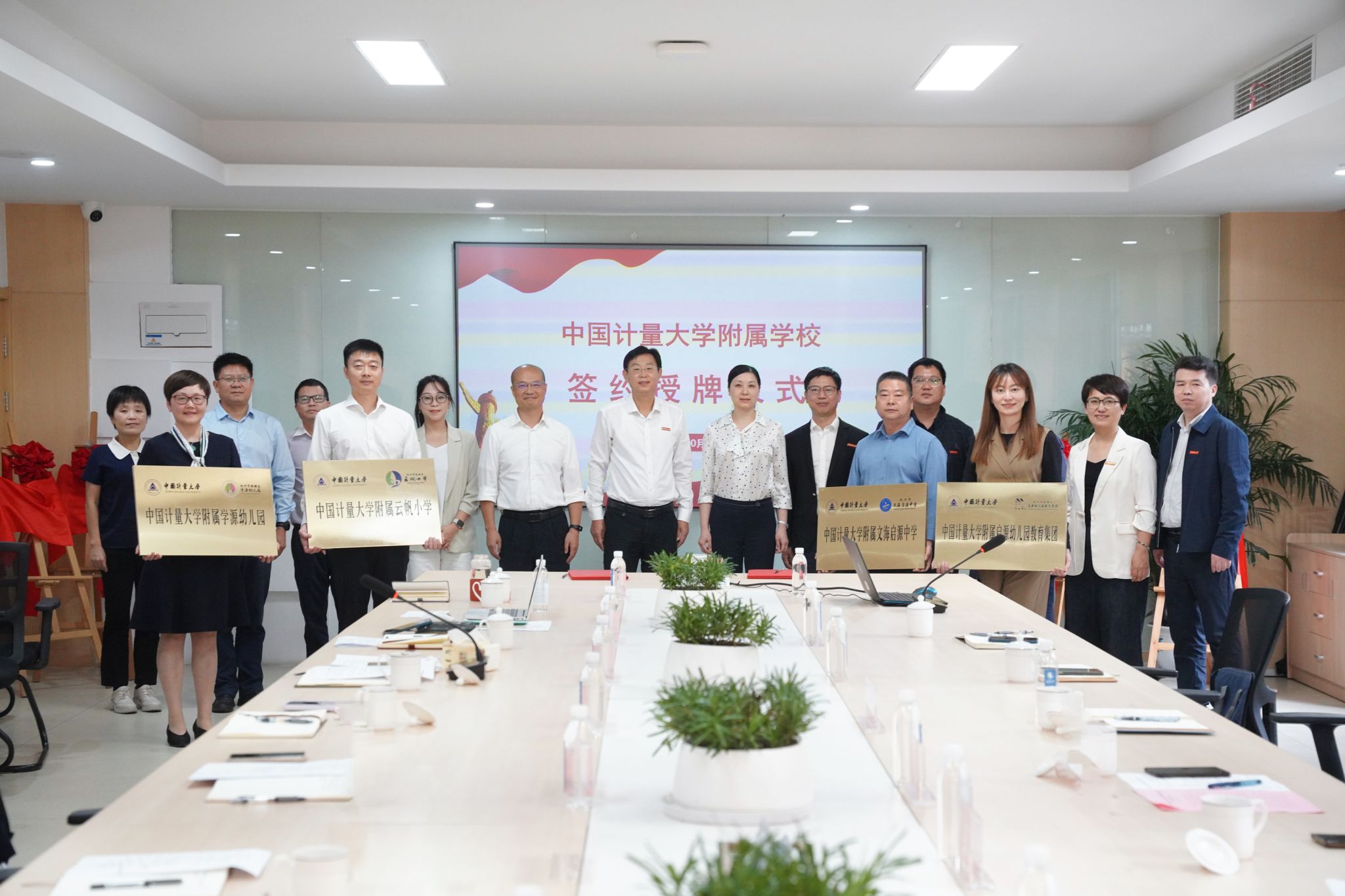 10月8日,中国计量大学与杭州市钱塘区人民政府合作办学签约暨中国计量大学附属学校揭牌仪式举行,中国计量大学附属文海启源中学、附属云帆小学、附属启源幼儿园教育集团、附属学源幼儿园正式挂牌。中国计量大学副校长王新庆,钱塘新区管委会副主任、副区长潘伟红,区政府办公室、教育局领导,中国计量大学相关部门、附属学校、白杨街道负责人出席仪式。