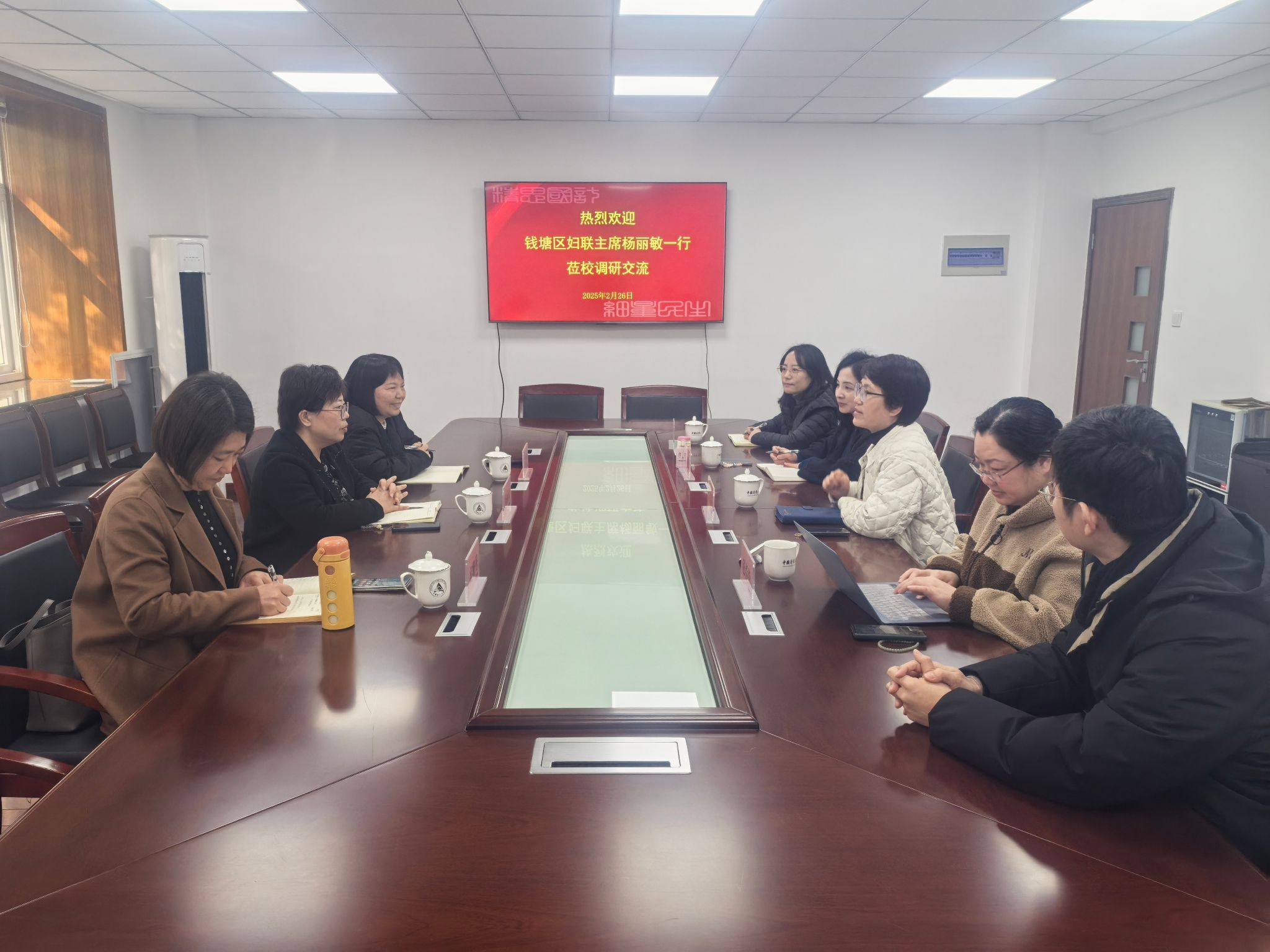 2月26日上午,钱塘区妇联党组书记、主席杨丽敏一行来校交流,校妇联、团委和教务处等相关职能部门负责人参加座谈交流。