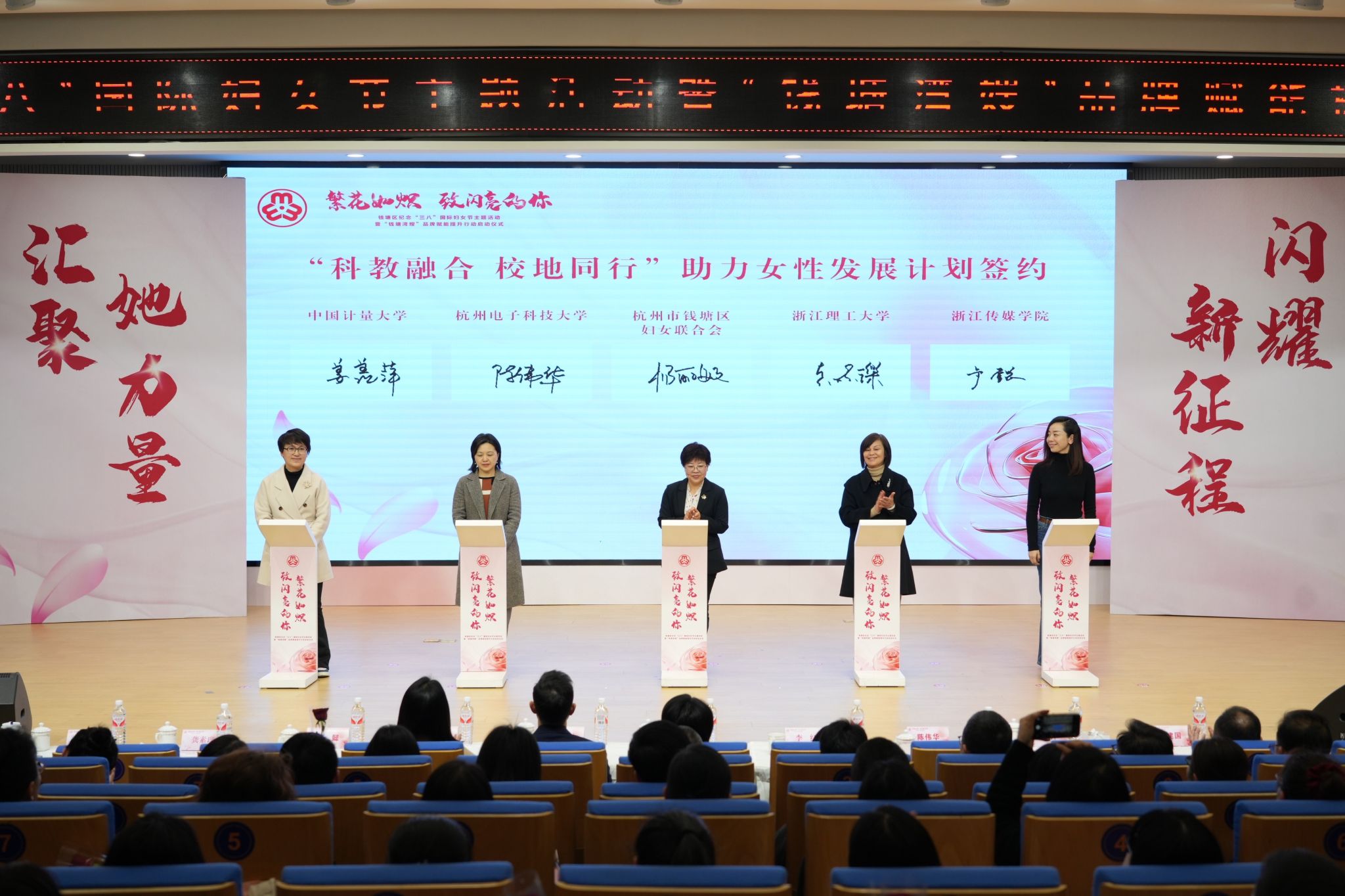仪式上,校妇联常务副主席姜羡萍代表学校与钱塘区妇联签署“科教融合 校地同行”助力女性发展计划书。