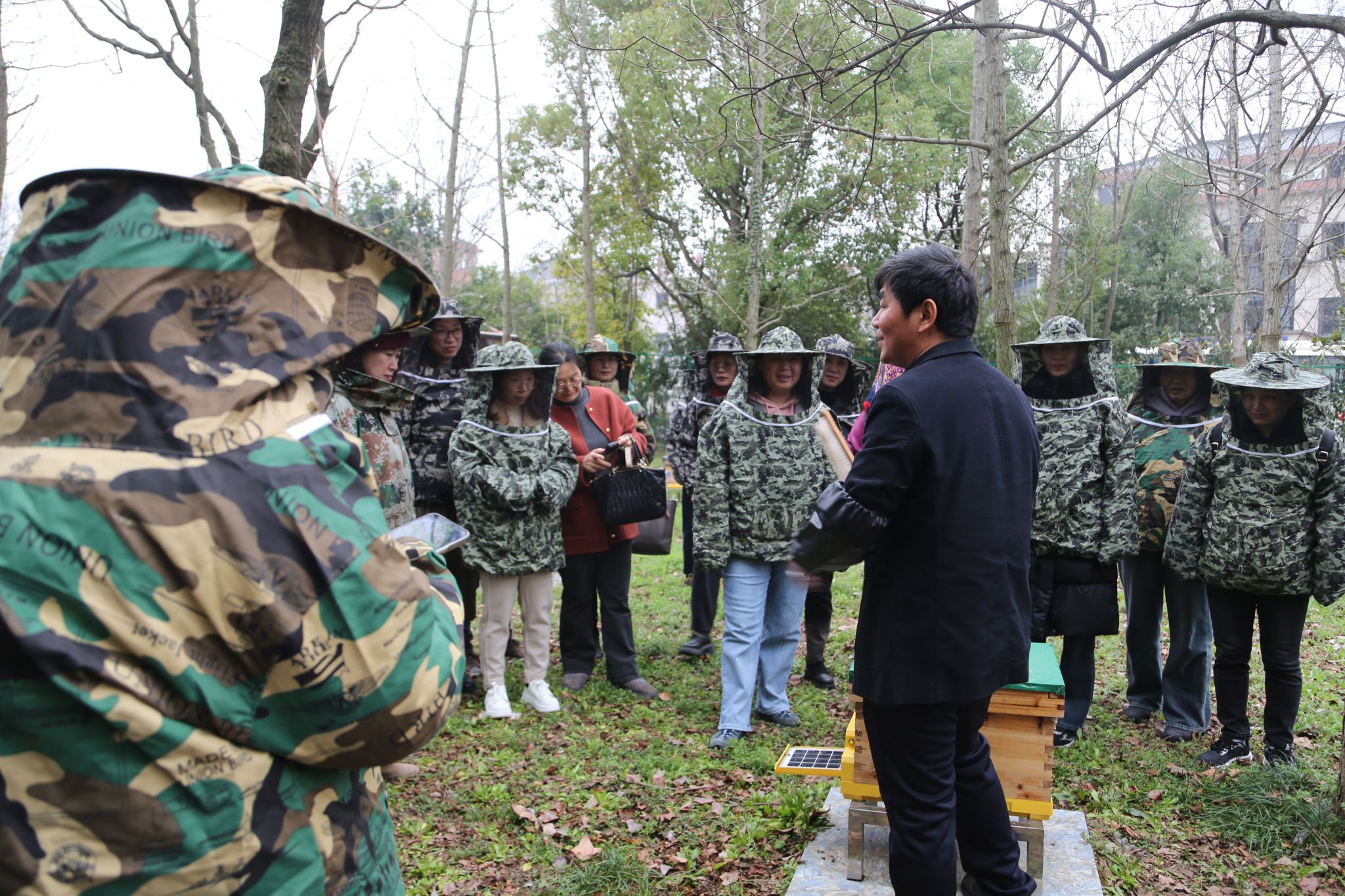 为促进产学研深度融合,进一步提升我校女教授队伍的专业素养与业务能力,校工会、妇联于3月10日组织女教授和工会、妇联女干部近40人赴我校李红亮教授蜂产品标准化研究合作基地杭州临平归蜜家庭农场开展了考察实践活动。