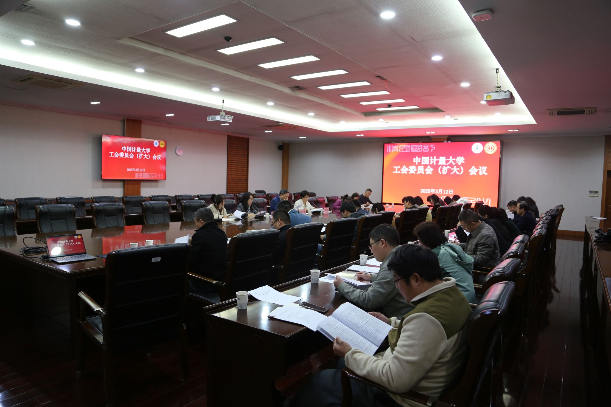 3月12日上午,我校在闻厅一楼会议室召开工会委员会(扩大)会议。校党委副书记、工会主席肖刚主持会议并讲话。校工会委员、经审委员、专门委负责人、专兼职干部及分工会负责人参加会议。