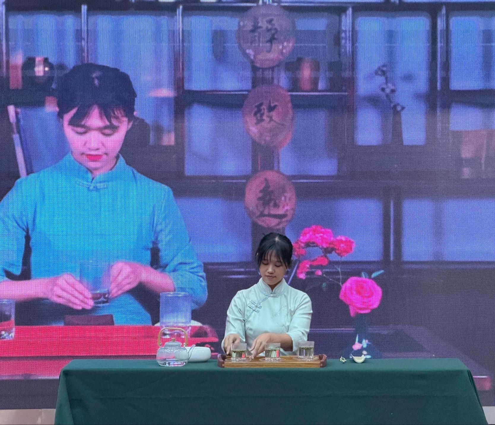 本次活动中,校工会联合九三学社开化县之社共同开展了“开化龙顶”茶文化沉浸式体验。国家茶艺技师、浙江省国际茶文化研究会常务理事毛京老师,以茶文化交流与传播为主题为教师们带来了一场生动的茶艺文化讲座。茶艺师们现场演绎传统茶道,动作优雅流畅,茶汤清亮、香气沁人。教师们在一斟一酌间,切身感受中华茶文化的博大与静美。
