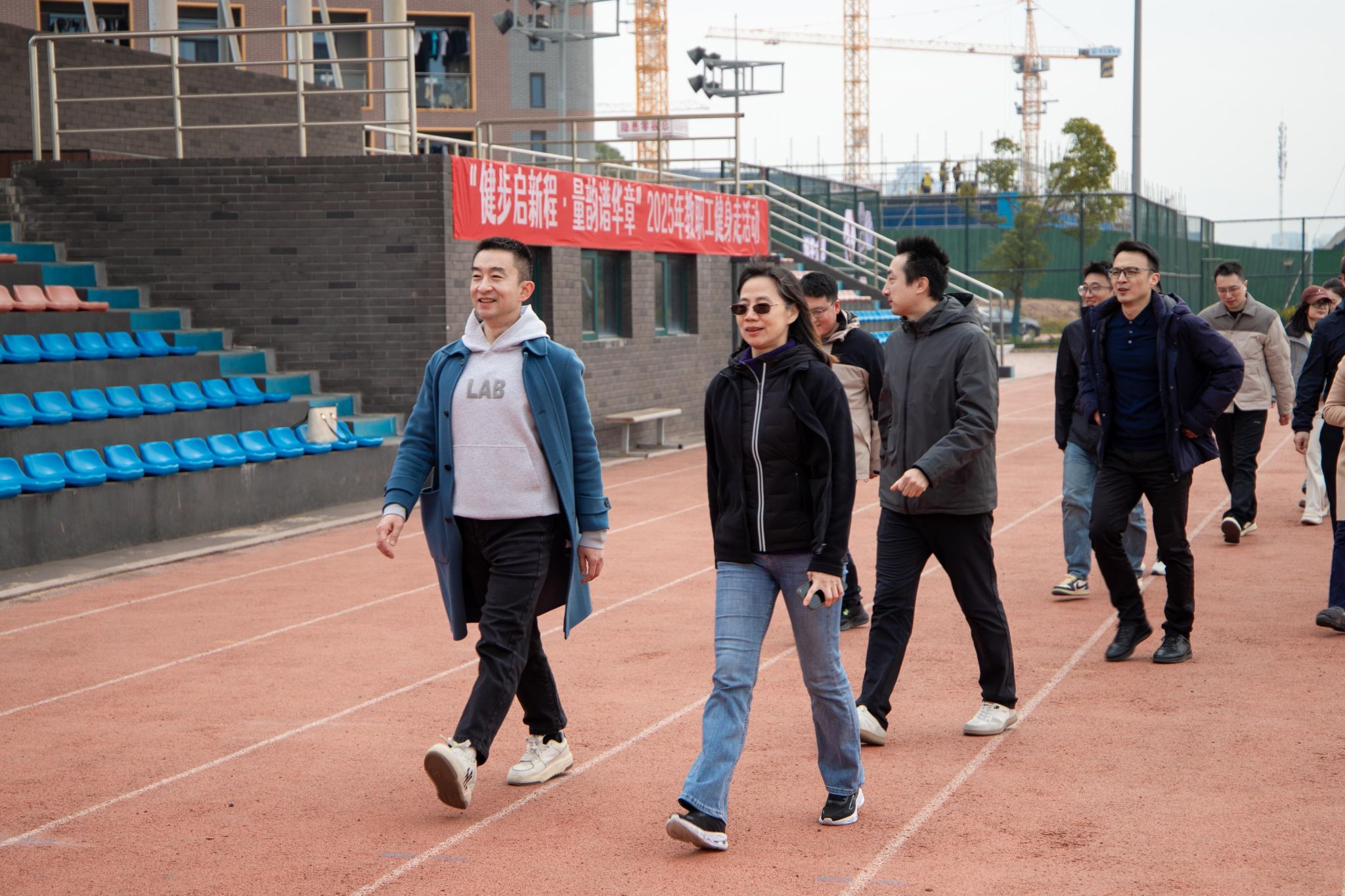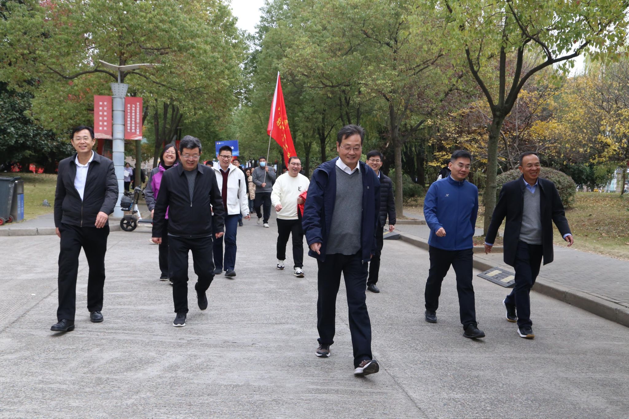程刚为健身走活动发令,校领导带领大家迈出了轻盈愉悦的健康步伐。教职工们按分工会编队,沿校园既定路线稳步前行。大家在冬日景致中交流畅谈,步伐轻快,气氛热烈。