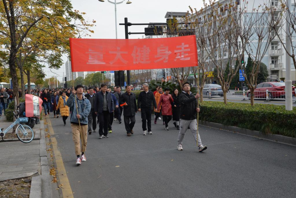 校党委书记张土乔为活动致辞。随后,教职工们在体军部李水强老师的带领下先进行热身运动,发令枪响后有序出发。队伍从学校正大门沿学源街至高教西公园,由公园北门进入沿公园外围道路自西向东行走一圈后返回,按活动既定路线完成3公里健身走。教职工们个个意气风发,精神抖擞,带着快乐的笑容,迈着矫健的步伐,阔步行走在健康之路。