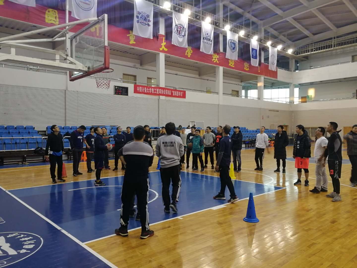 12月31日下午4时,天健体育馆呐喊冲天,热闹非凡,来自全校15个分工会的近40名教工篮协会员汇聚一堂,共同享受属于他们的篮球盛宴,喜迎2020年的到来。
