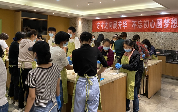 活动开始,烘焙老师详细讲解了月饼的制作流程:拌酥、揉面团、包馅、上色、烘烤。老师们跃跃欲试,迫不及待地拿起原材料和工具,按照烘焙老师教的步骤一步步用心完成。大家聚在一起聊中秋、话传统,亲手将对节日的美好愿景揉进面团中,一点一点做出“团圆”的滋味,感受传统节日浓厚的氛围。