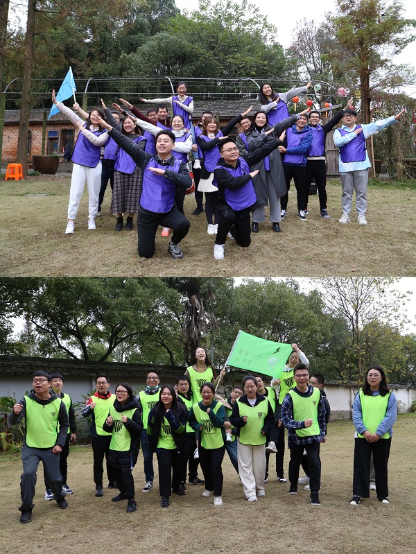 团建活动在萧山山里人家素质拓展基地开展,在素拓教练的指导下,青年教师首先开展“破冰”活动,后又分成两个团队进行比拼。队员们充分发挥集体智慧,设计队徽、队名、队歌以及制作队旗,并进行活力展示,使每位成员融入团队。两支队伍随后在“击鼓颠球”、“雷区取水”等团建活动中,相互信任,通力合作,充分调动每一位成员智慧和力量。