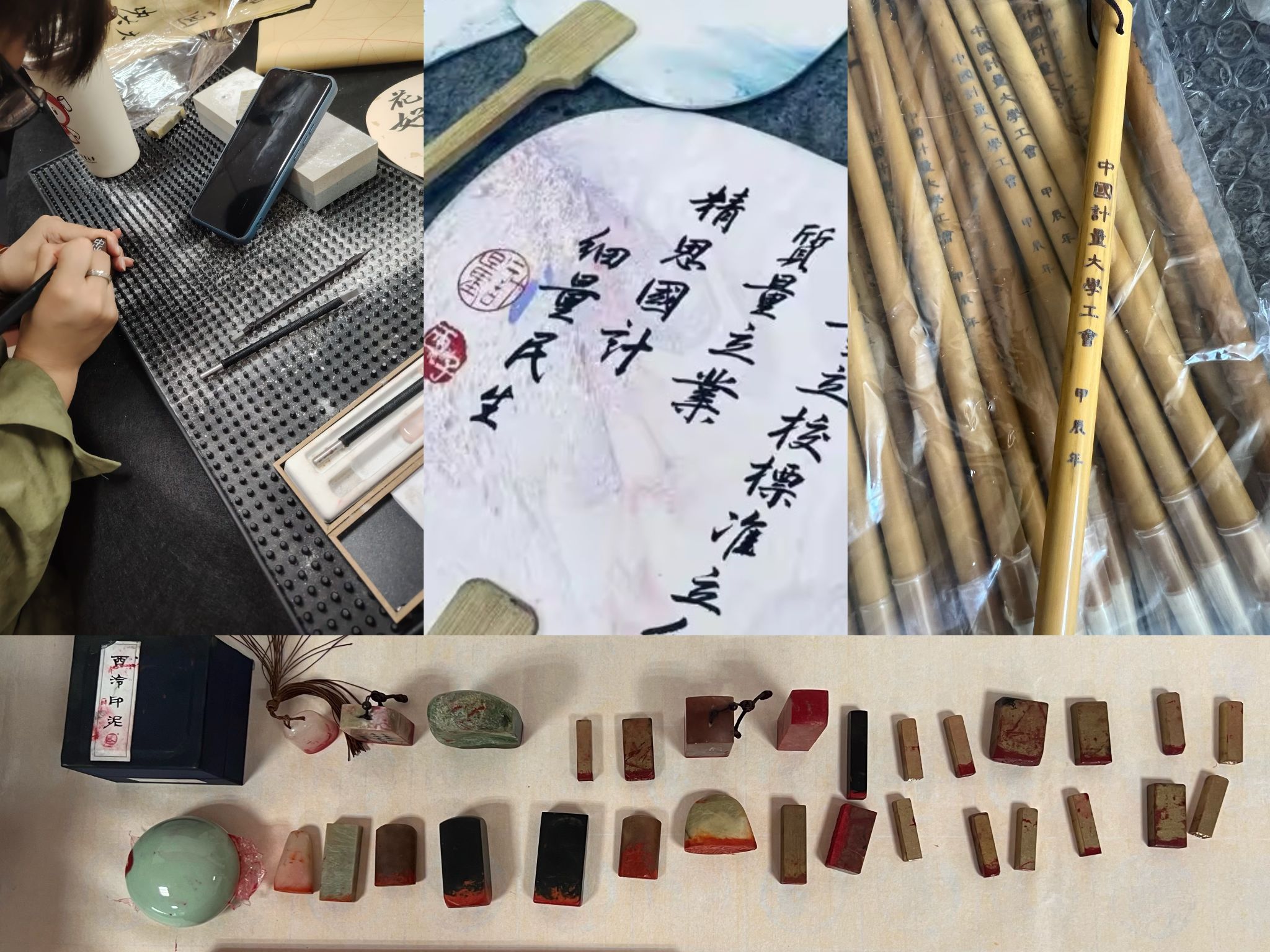 此外,篆刻印章也深受大家关注,活动提供了引首章、压角章、吉语章、警言章等丰富的闲章,尤其是刻有“计量”的章,频频出现在大家的书法作品中。