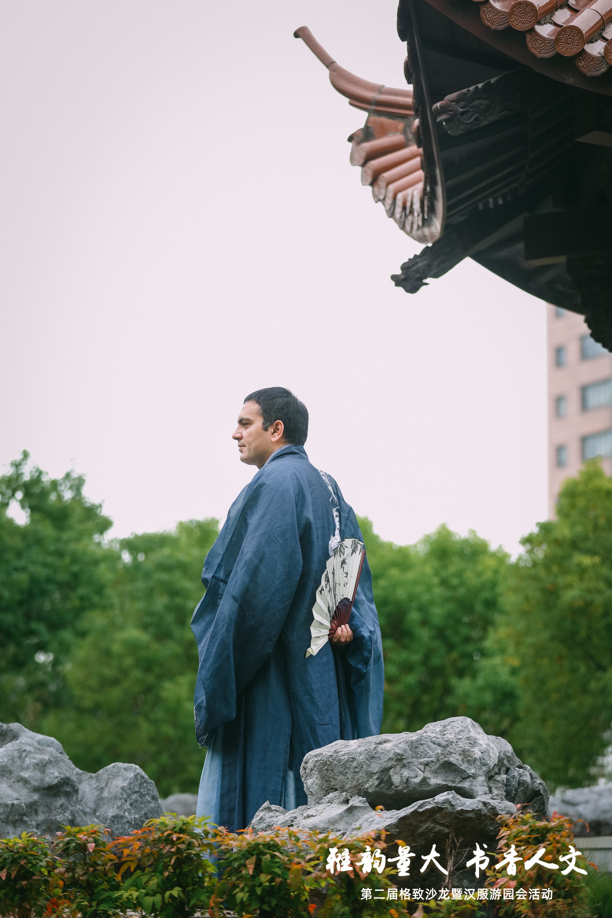 本次汉服游园会给老师们带来了独特体验。光电学院倪凯老师很喜欢这个活动,去年遗憾错过了,今年第一时间报名参加。他会吹笛子,正好今天妆造组配有一把竹笛,他拿起笛子,笛声在十月荷塘的微风间绵延辗转。