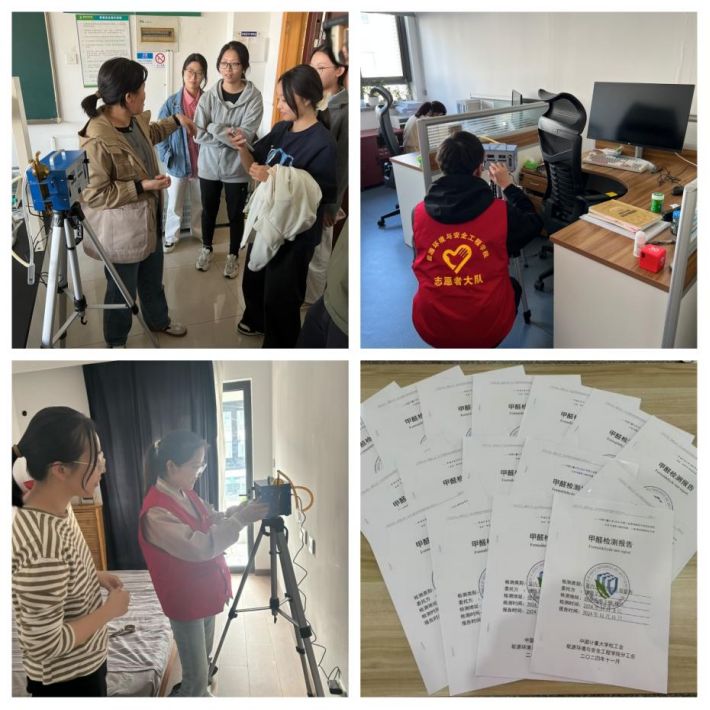 此次甲醛检测活动是隶属于2024年校工会思想政治引领活动项目——《“五进”科普助力能安发展,“三核”驱动构筑美好未来》的系列主题活动之一。自项目启动以来,能安学院分工会与学院学工办、实验室及各专业部门紧密合作,陆续推出了多项形式新颖、平实有趣的科普宣教活动。三月,学院黄冬梅教授与校保卫处联合,在学校西校区图书馆前成功举办了一场别开生面的消防设施现场体验活动。五月,学院邀请浙江省特种设备科学研究院特种设备安全科普大篷车入驻校园,在启明广场吸引了众多师生驻足观看,并通过VR体验深入了解特种设备安全。六月,分工会与实验室共同组织了面向全院教职工的“实验室安全知识竞赛活动”,涵盖了日常水电安全、消防、危化品、特种设备安全以及研究生安全管理和生活安全等方面的内容。七月,安全工程专业的吴琳琳老师带领团队前往头格社区、东保社区,分别开展电梯安全公益宣教活动,向老年人和儿童普及电梯安全知识。八月,能安学子在暑期活动中跟随钱江燃气公司的检修人员深入家庭对燃气管道、灶具、热水器进行检查,并根据结果向居民提供了专业指导。九月以来,学院领导及各专业部分教师还陆续与包括宁波华润兴光燃气公司、绍兴上虞杭协热电有限公司、三门核电有限公司等企业进行了深入交流,部分专业教师还深入企业前线传播节能、环保和安全技术知识。