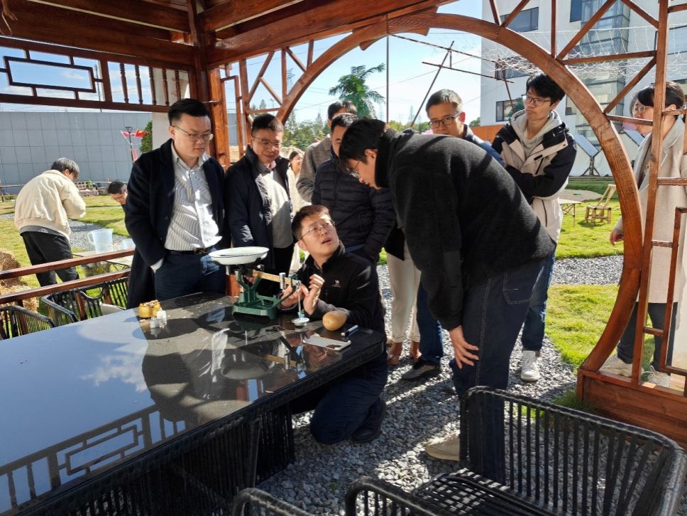 当天下午,计测分工会又精心策划了一场更具实践性的计量主题创意活动。教师们依据自身经验和提供的原始测量器具(折尺、方升和案秤),对农庄中的一块特定田地长度、一个舀水瓢的容量和一把土豆的重量进行了测量竞猜。这一活动恰好契合了老师们的学科背景,大家积极参与,热烈讨论,将抽象的理论知识和方法运用于实践操作。当竞猜结束后,由我院精通计量的教授使用激光测距仪、量杯量筒和电子秤等现代计量仪器进行精确测定,并根据竞猜结果与真值之间的差距评选出了多位“计量大师”。他们的测量结果与仪器测量值分毫不差,不得不令人心生佩服。