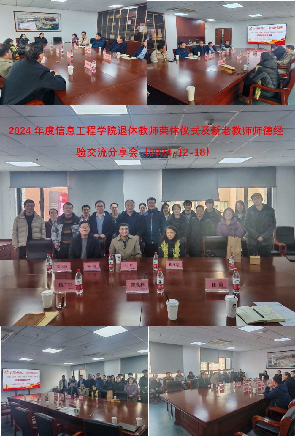 三尺讲台献芳华,四季耕耘育桃李。为增强退休教师集体荣誉感和归属感,激励新一代教师不忘初心,接续奋斗,12月18日,信息工程学院分工会在博雅南楼404会议室举行了2024年退休教师荣休仪式和新老教师经验交流分享会,以表达对六位退休教师几十年如一日辛勤耕耘教育事业的崇高敬意与深切祝福。学院党委书记郑成林,党委副书记杨广军,各系负责人和近2年新进青年教师参加荣休仪式,会议由学院工会主席杜勇主持。