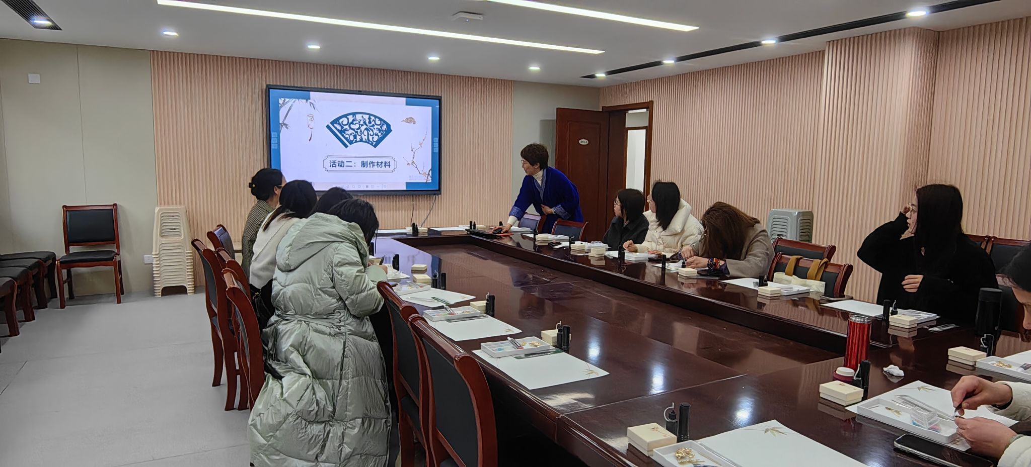 实践环节中,女教师们化身“非遗匠人”,精心挑选蝴蝶、银杏、牡丹等造型的檀木底托,运用镊子、胶水等工具,将贝母薄片与珍珠母贝进行拼嵌创作。参与者通过层叠、渐变等手法,让传统纹样焕发现代美感,产生诗意的化学反应。