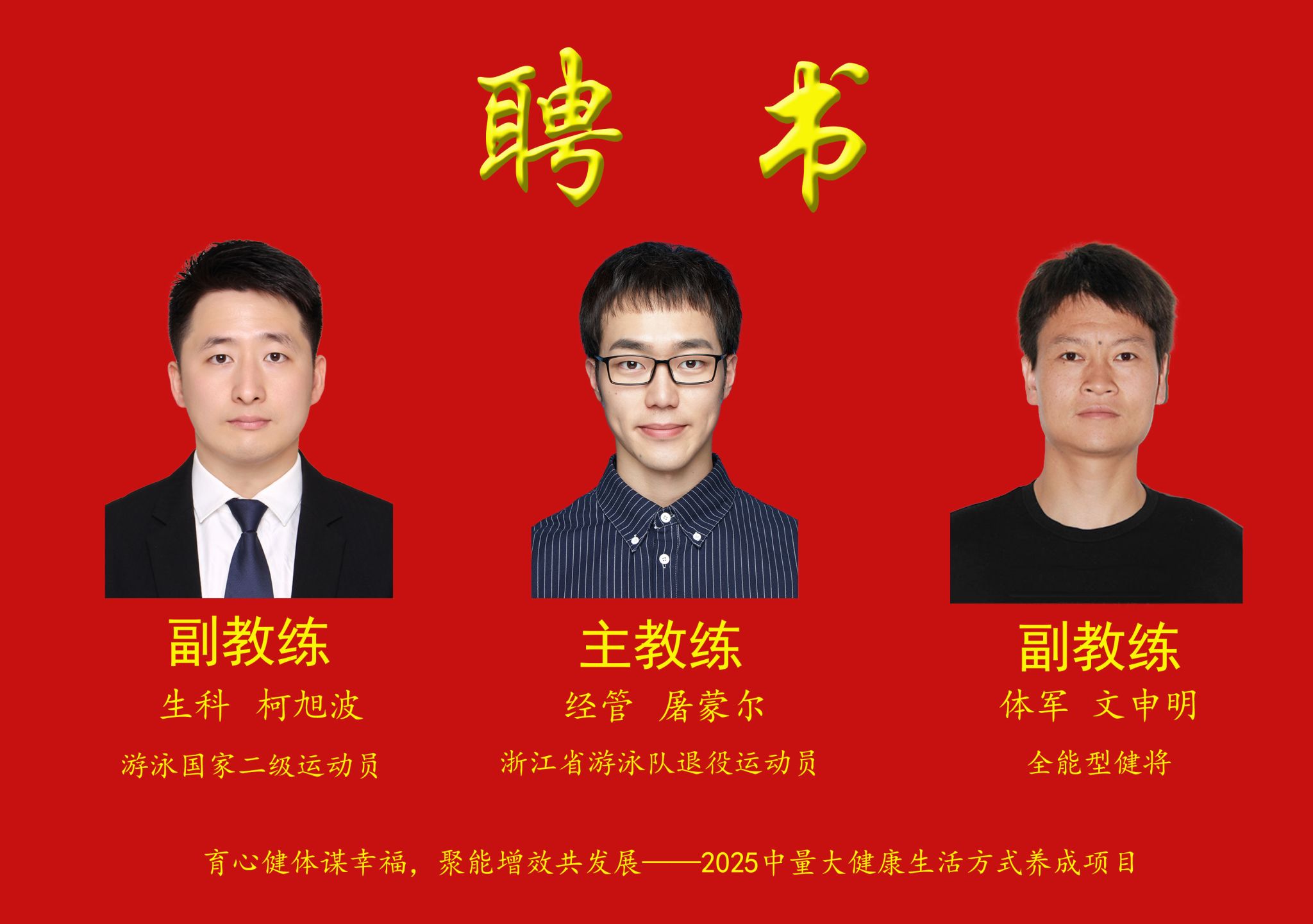 4月25日中午11:50,团队成员在浙江工商大学游泳馆集合,开展了一个简短的项目启动仪式,正式聘请屠蒙尔、柯旭波、文申明三位老师为团队游泳教练,并为项目参与者颁发统一泳帽。