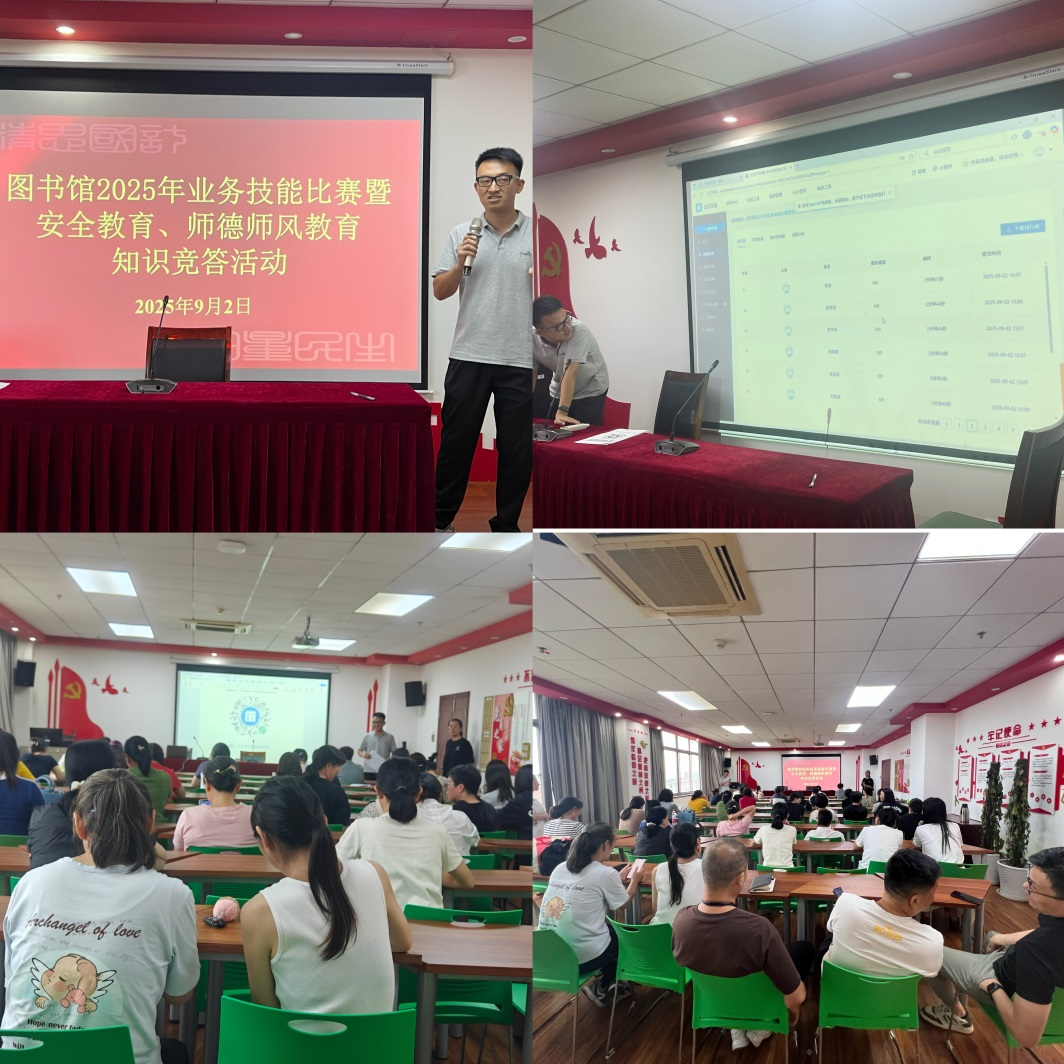 2025年9月3日下午,图书馆分工会在逸夫图书馆713成功举办了“2025年业务技能比赛暨安全教育、师德师风教育知识竞答活动”。此次活动旨在通过知识竞答的形式,检验和提升我馆工作人员对图书馆业务、安全教育以及师德师风等方面知识的掌握程度,从而进一步提高服务质量和专业素养。
