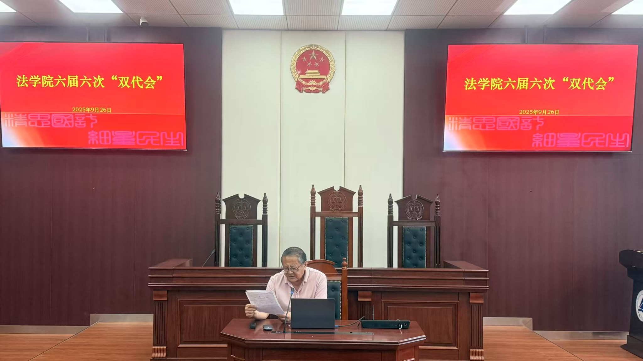 9月26日中午,法学院(知识产权学院)在广宇楼A205召开六届六次双代会,选举增补分工会委员。教代会全体代表参加会议,会议由分工会主席王卫平主持。