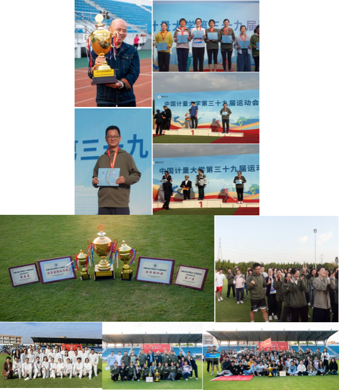 在本次运动会中,光电学院教工凭借出色表现斩获佳绩,荣获教工组田径比赛成绩第一名、学院团体总分第一名,一举夺得“计量杯”桂冠,学院分工会同时荣获优秀组织奖,彰显了学院教工顽强拼搏、团结协作的体育精神。