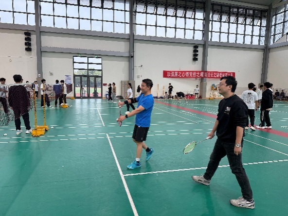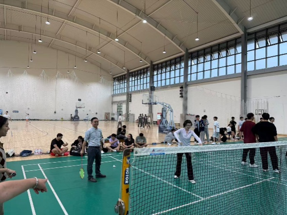 到了赛事尾声的自由竞技环节,氛围变得轻松又热烈。师生们自由组队,有的还在认真探讨打球技巧,想趁着机会多学两招;有的则彻底放下胜负心,打丢了球就笑着调侃,得分了就一起欢呼,羽球在空中来回穿梭,伴随着此起彼伏的笑声,定格下师生间无拘无束、温馨互动的画面。
