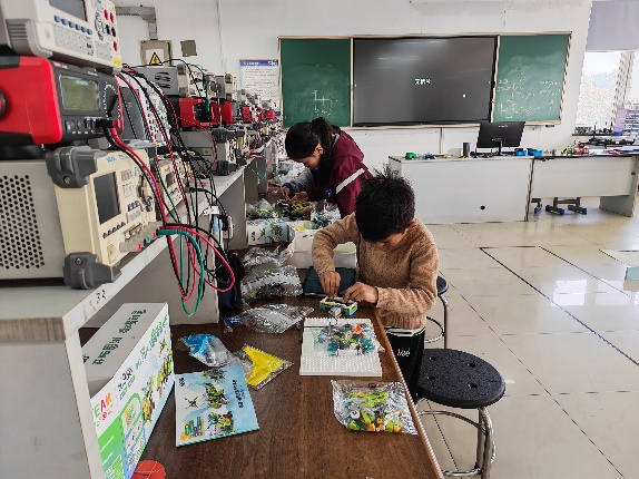 观看完机器人小车的表演后,老师首先展示了几个已完成的作品:能够前进后退的霸王龙、扫雷车,巡线车立即引起了孩子们的阵阵惊叹。“这些零件就像魔法世界的道具,只要你有想象力,就能让它们变成任何会动的物体。”小学生们迫不及待地打开零件盒,开始了他们的创造之旅。从辨认零件到了解结构原理,从简单模仿到自由发挥,孩子们在教师的耐心指导下,逐步掌握搭建的基本技巧。