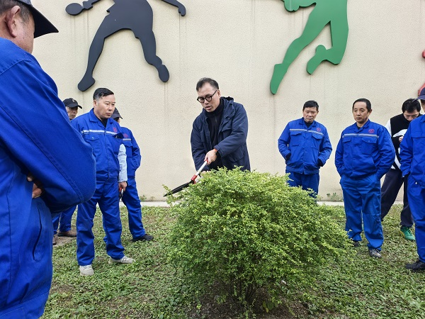 在实操环节,参训员工按照专家指导,认真辨别灌木修剪部位,精准掌握修剪角度和力度,现场练习氛围浓厚。