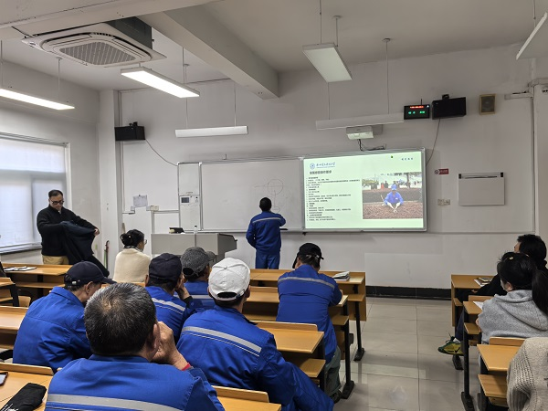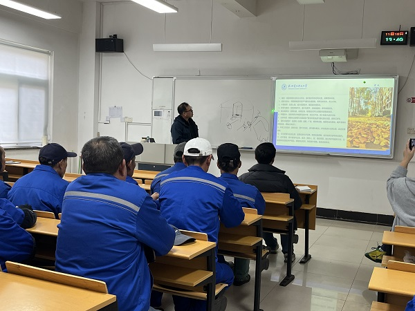 陈健老师拥有20余年校园绿化养护的实践经验,对校园绿化养护与管理工作有全面、系统的理解。他着重指出,应依据植物特性科学编制养护月历,明确养护重点与养护标准。尤其针对植物施肥、灌溉与排水、中耕除草、病虫害防治、绿化修剪以及安全操作规范等方面进行了详细讲解。培训过程中,参训人员积极参与互动,加深了对绿化管理知识的理解与吸收。