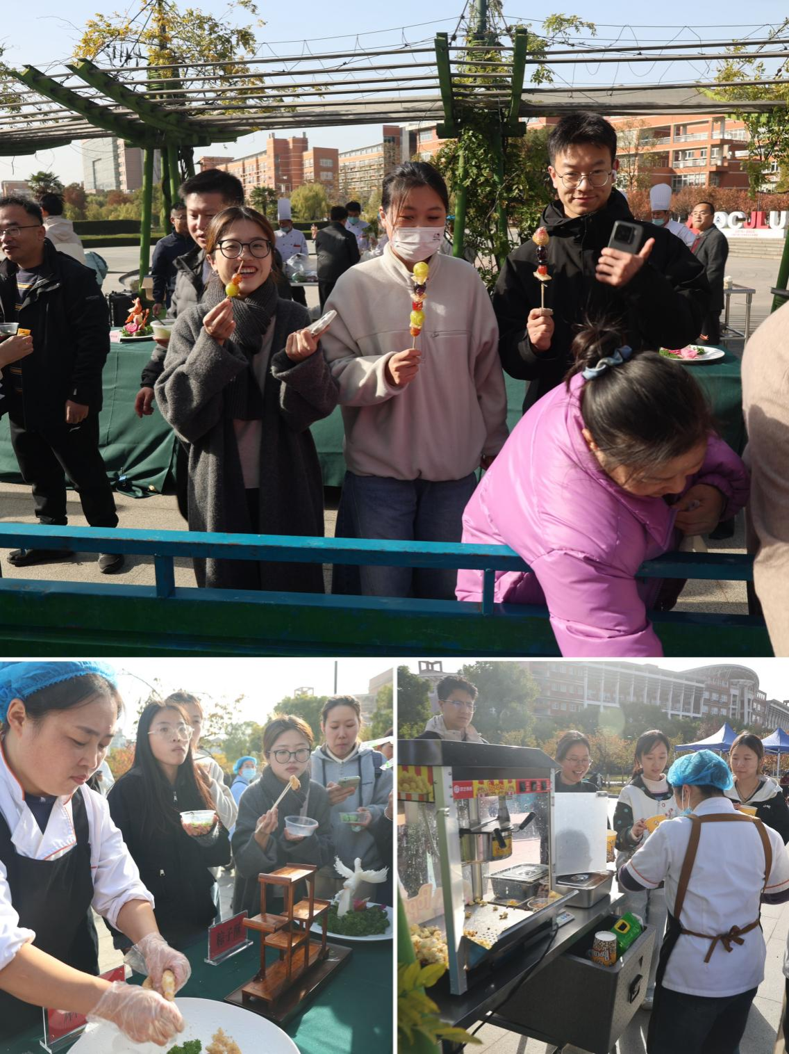 “餐饮的大厨们真是卧虎藏龙,摆盘雕花比外面酒店的更精致”“维修师傅们手特别巧,平时寝室报修工作效率也很高”“希望能多一些这样的活动,让我们有更多机会了解后勤的各位能人们”……充分的知识储备、精湛的岗位技艺、团结的奋斗精神,参赛人员们出色的赛场表现、优质的比赛作品,赢得了在场师生们的阵阵赞叹,造就了一幕幕令人难忘的精彩瞬间。