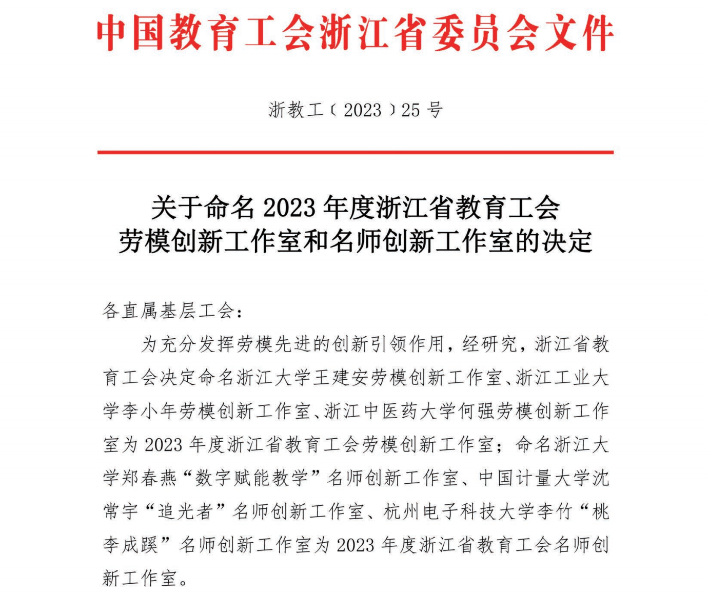 近日,浙江省教育工会发布《关于命名2023年度浙江省教育工会劳模创新工作室和名师创新工作室的决定》,我校光学与电子科技学院沈常宇“追光者”名师创新工作室成功入选。这是首批被浙江省教育工会命名的名师创新工作室,全省仅3家。