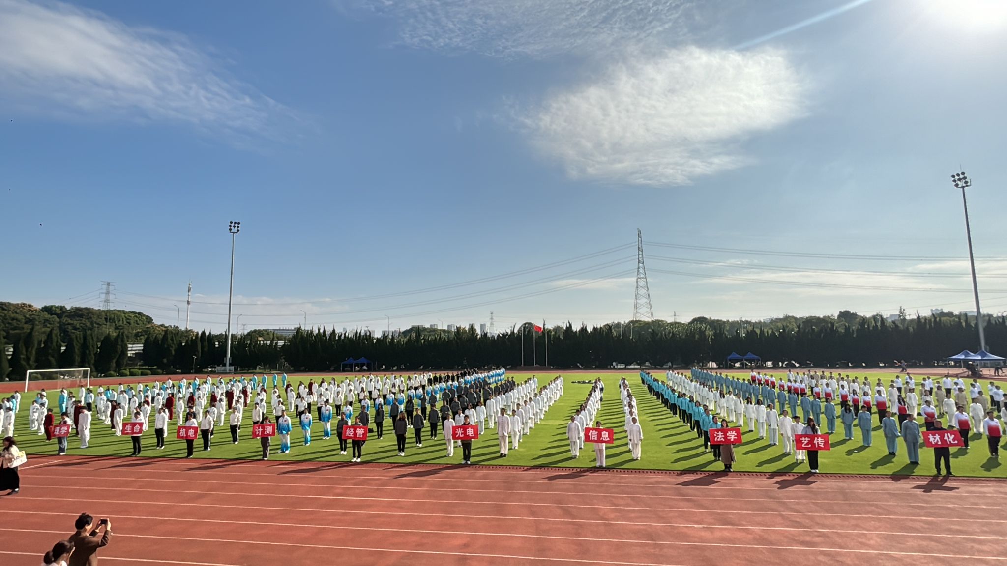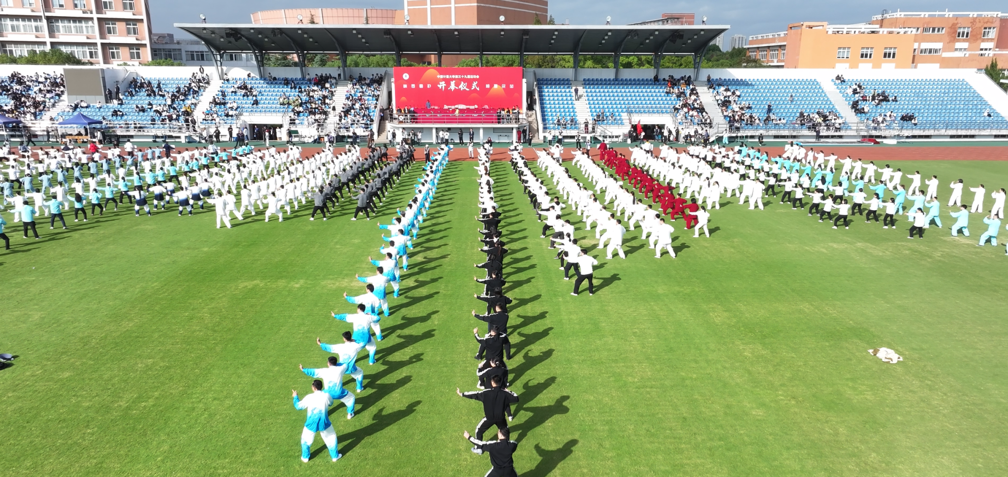 10月23日,在学校第三十九届运动会开幕式上,我校成功举办2025年教职工“八段锦”比赛。来自19个分工会的500余名教职工齐聚赛场,同台展演。经评委现场评分,计测学院分工会代表队获金奖,机关、信息学院、光电学院、图书馆、理学院等分工会代表队获银奖,材化学院、能安学院、人文外语学院、机电学院、艺传学院、工训中心、后勤中心等分工会代表队获铜奖。