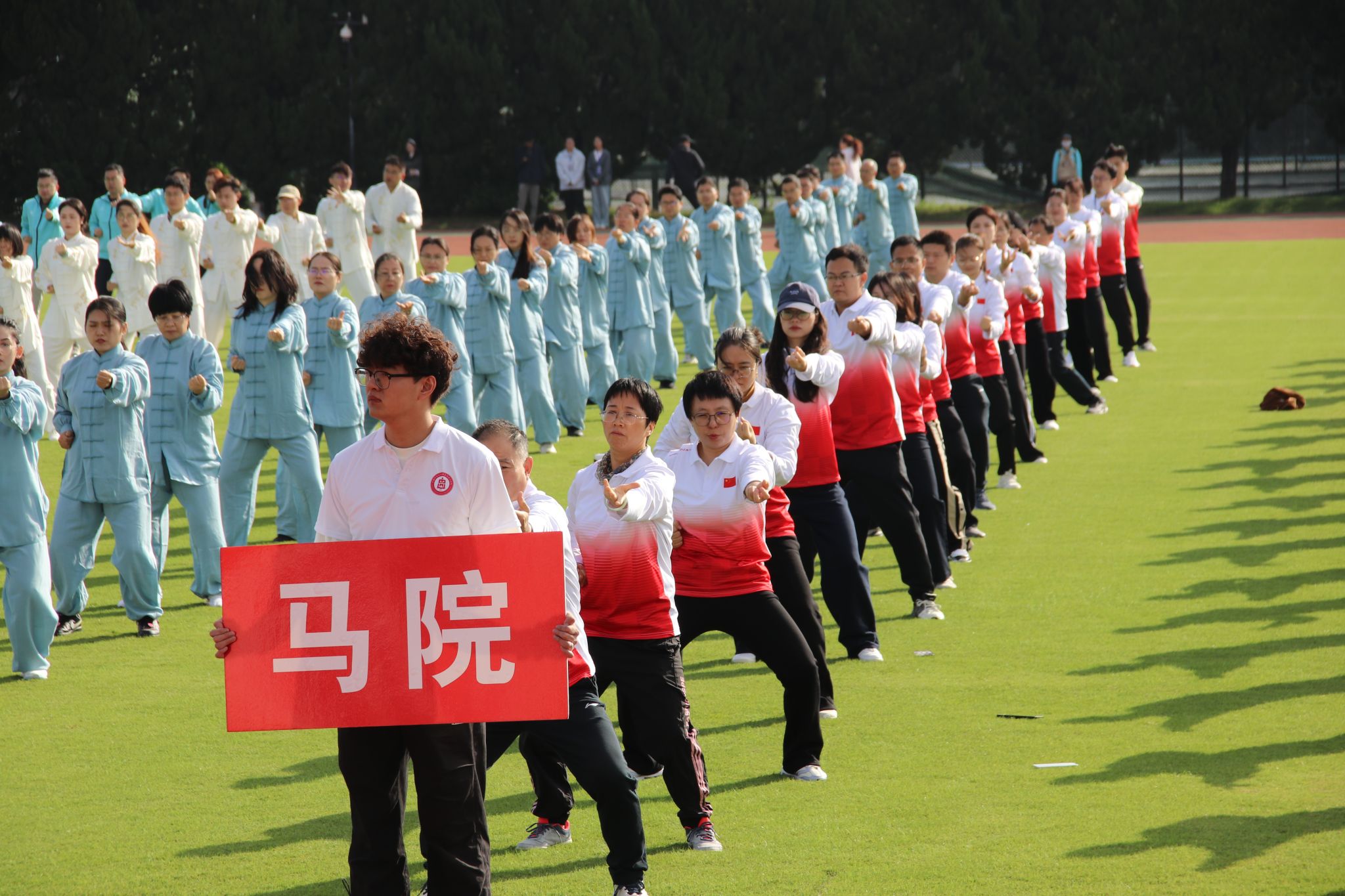 赛场上,参加“八段锦”比赛的教职工们身着统一运动装,步伐稳健,神采奕奕。随着音乐响起,他们以饱满的精神状态和整齐划一的动作,将八段锦形神兼备的魅力展现得淋漓尽致。这既是一场别开生面的体育竞技,更是一次深入人心的人文展演。活动有效帮助教职工缓解了压力、调养了身心,并进一步在校园中营造出“运动、快乐、健康”的积极氛围。
