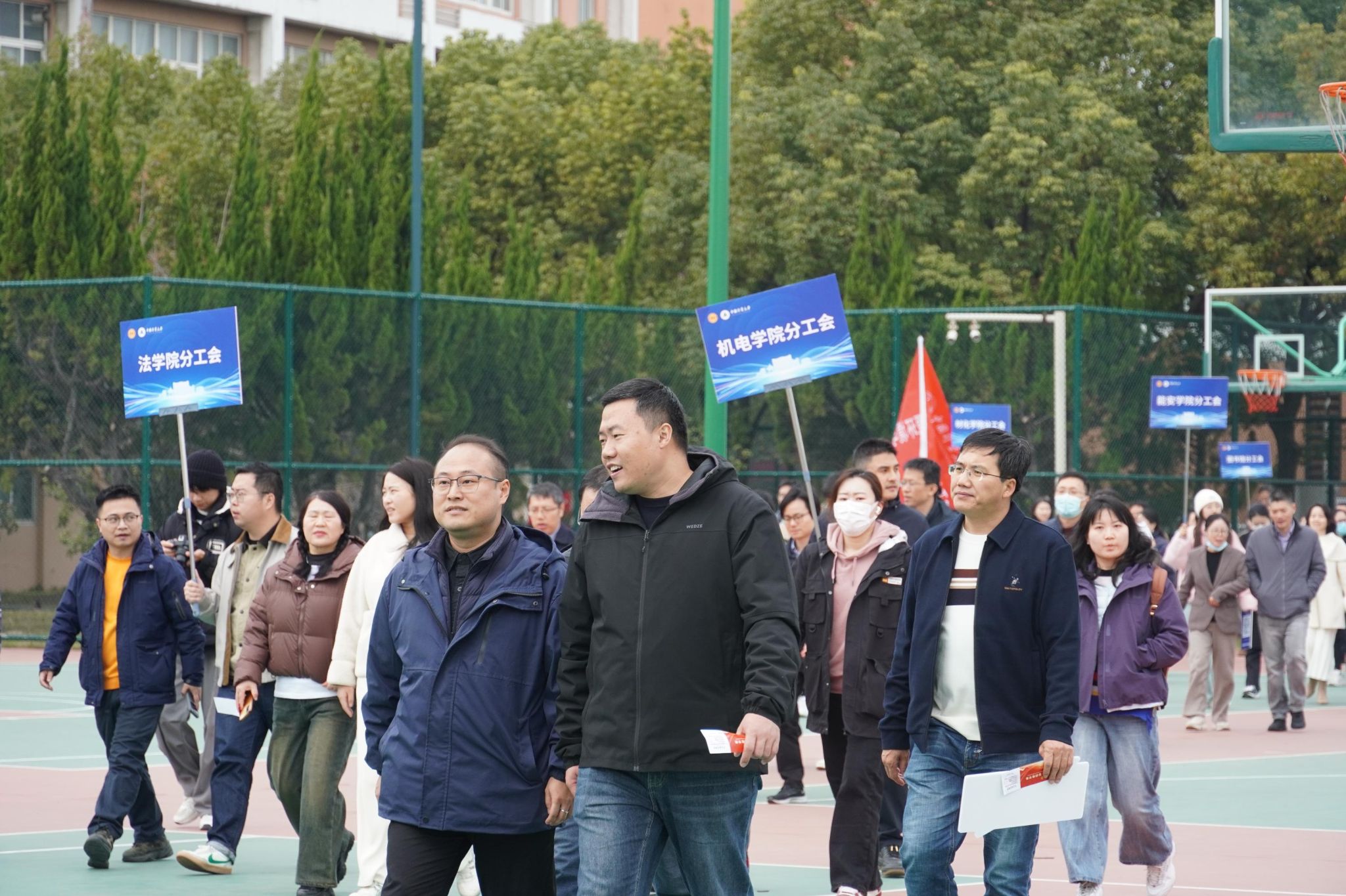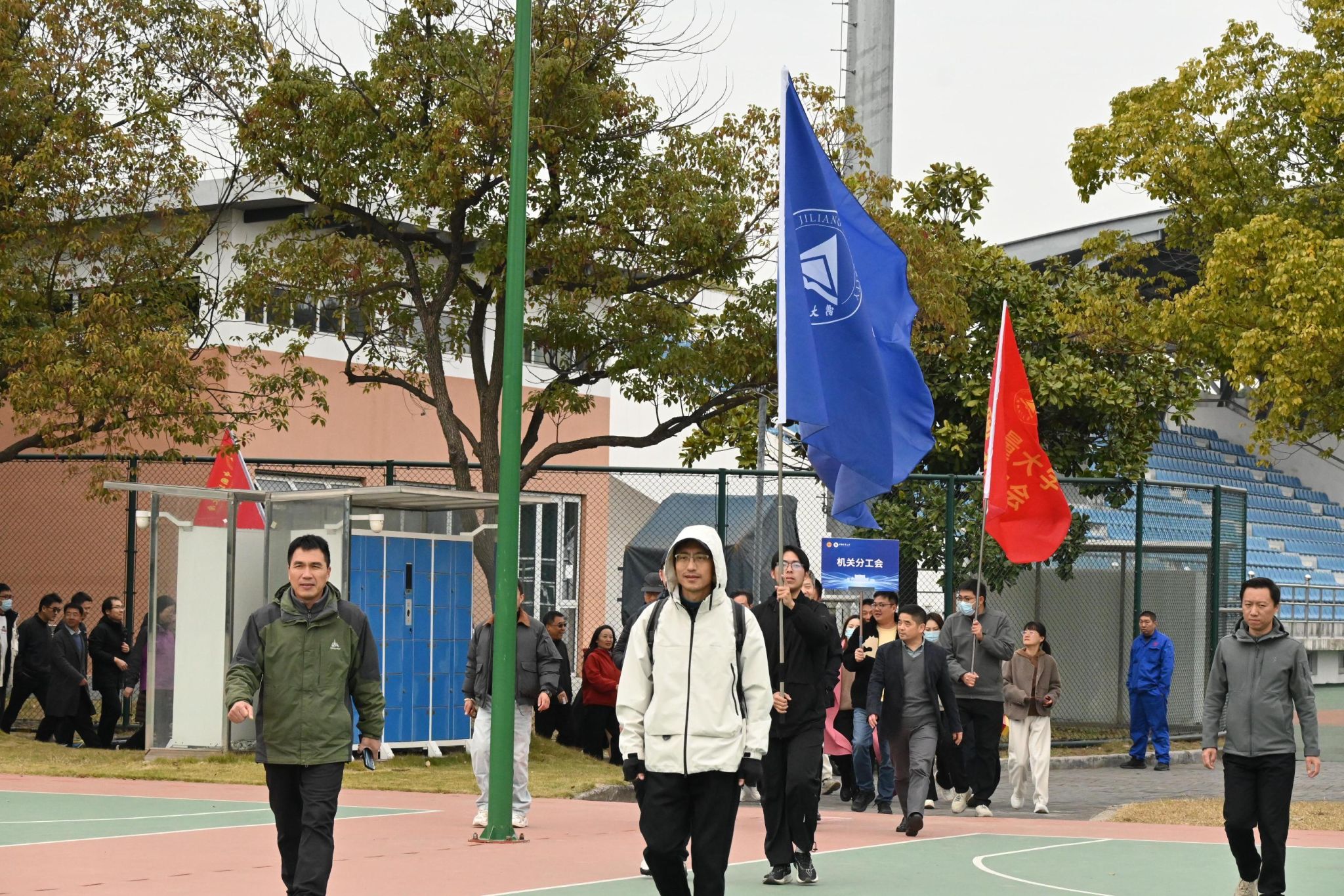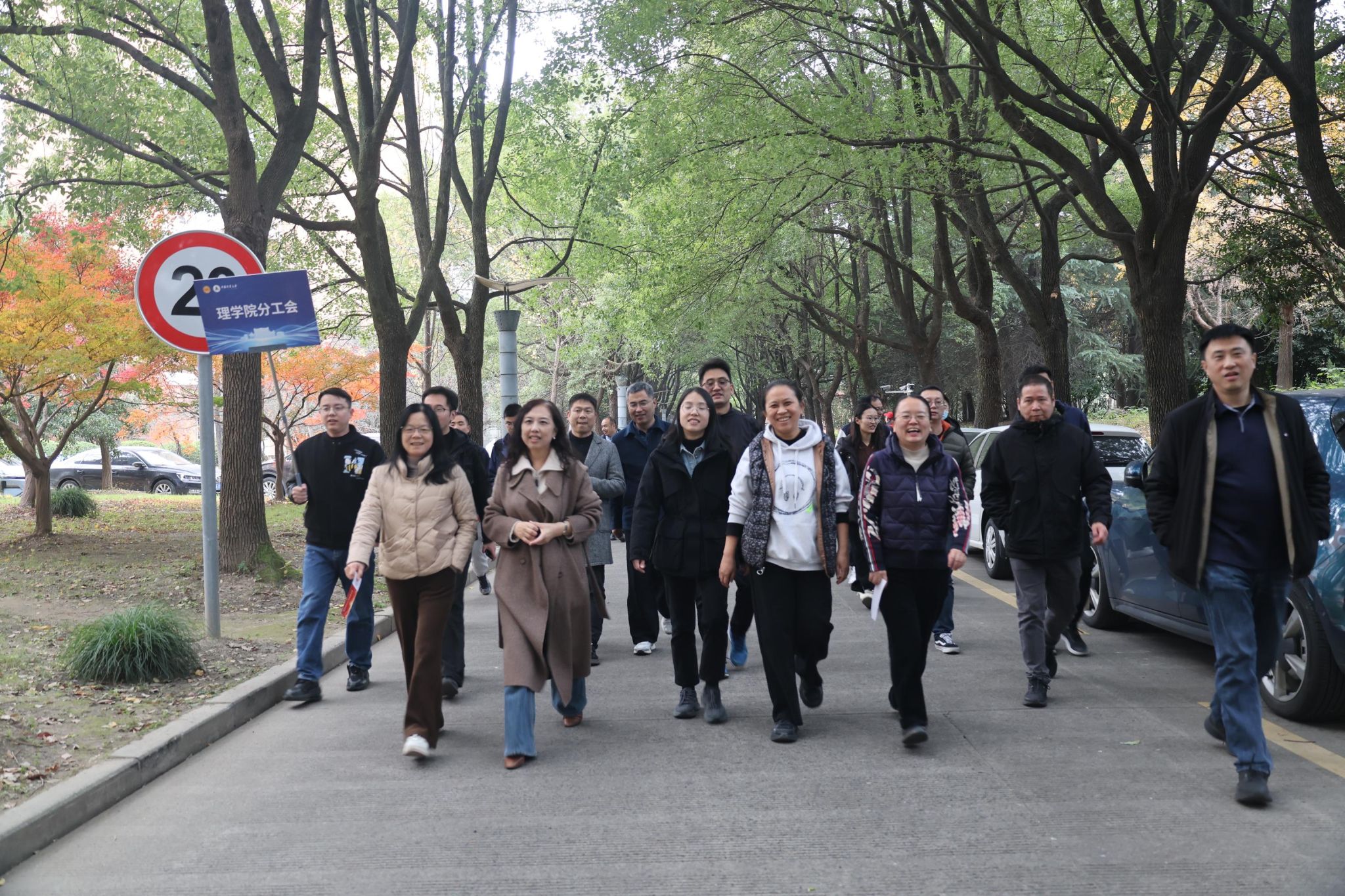 程刚为健身走活动发令,校领导带领大家迈出了轻盈愉悦的健康步伐。教职工们按分工会编队,沿校园既定路线稳步前行。大家在冬日景致中交流畅谈,步伐轻快,气氛热烈。