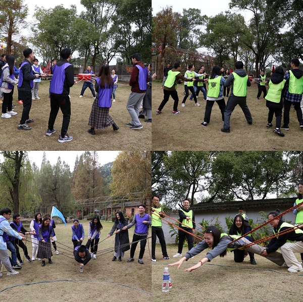团建活动在萧山山里人家素质拓展基地开展,在素拓教练的指导下,青年教师首先开展“破冰”活动,后又分成两个团队进行比拼。队员们充分发挥集体智慧,设计队徽、队名、队歌以及制作队旗,并进行活力展示,使每位成员融入团队。两支队伍随后在“击鼓颠球”、“雷区取水”等团建活动中,相互信任,通力合作,充分调动每一位成员智慧和力量。
